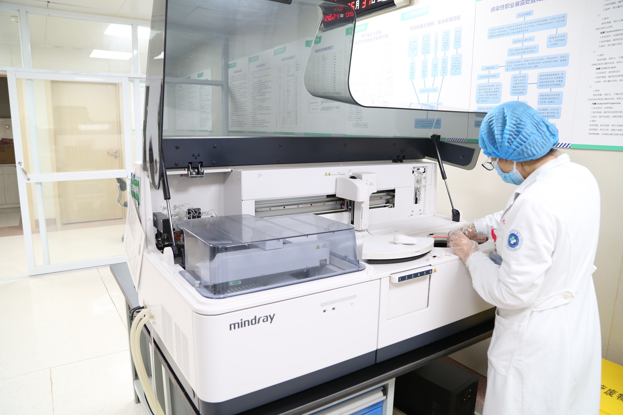 科室配备有迈瑞BC-5180五分类血液分析仪、优利特500B全自动尿液分析仪、迈瑞C3100血凝仪、迈瑞BS-430全自动生化分析仪和迈瑞CL-1000i发光仪及不规则抗体的博讯温度空气浴等先进设备。