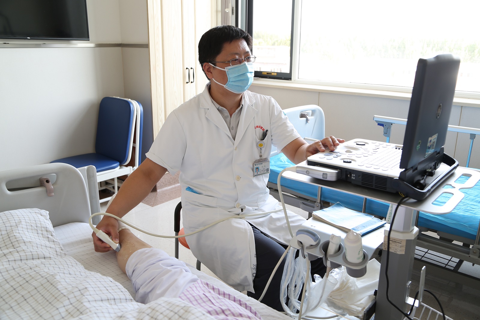 超声医学科现有超声医师2名,配有GE公司LOGIQC9中高档彩色多普勒超声诊断仪1台,GE LOGIQV2便携式彩超机1台,超声检查室2间。