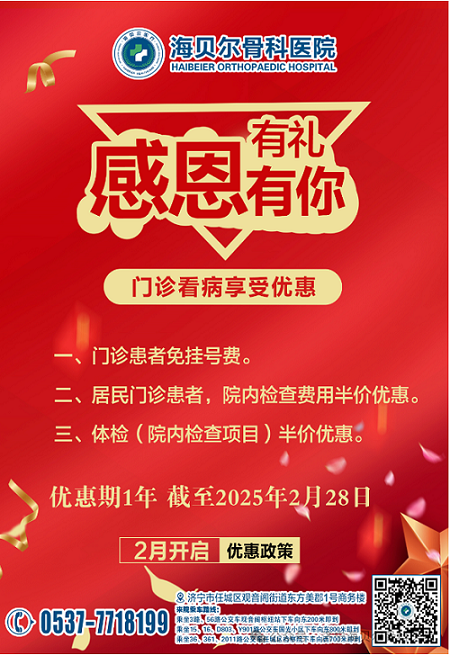 济宁海贝尔骨科医院感恩有你、有礼!门诊看病优惠政策!