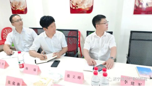 2023年6月29日,山东省社会办医疗机构协会(以下简称协会)秘书长杨瑞、副监事长张立峰、副秘书长李晓刚、干事李建军调研组一行四人来到我院调研指导工作。海贝尔医院董事长张化海、党支部书记副院长相瑞艳、副院长程立陪同调研。