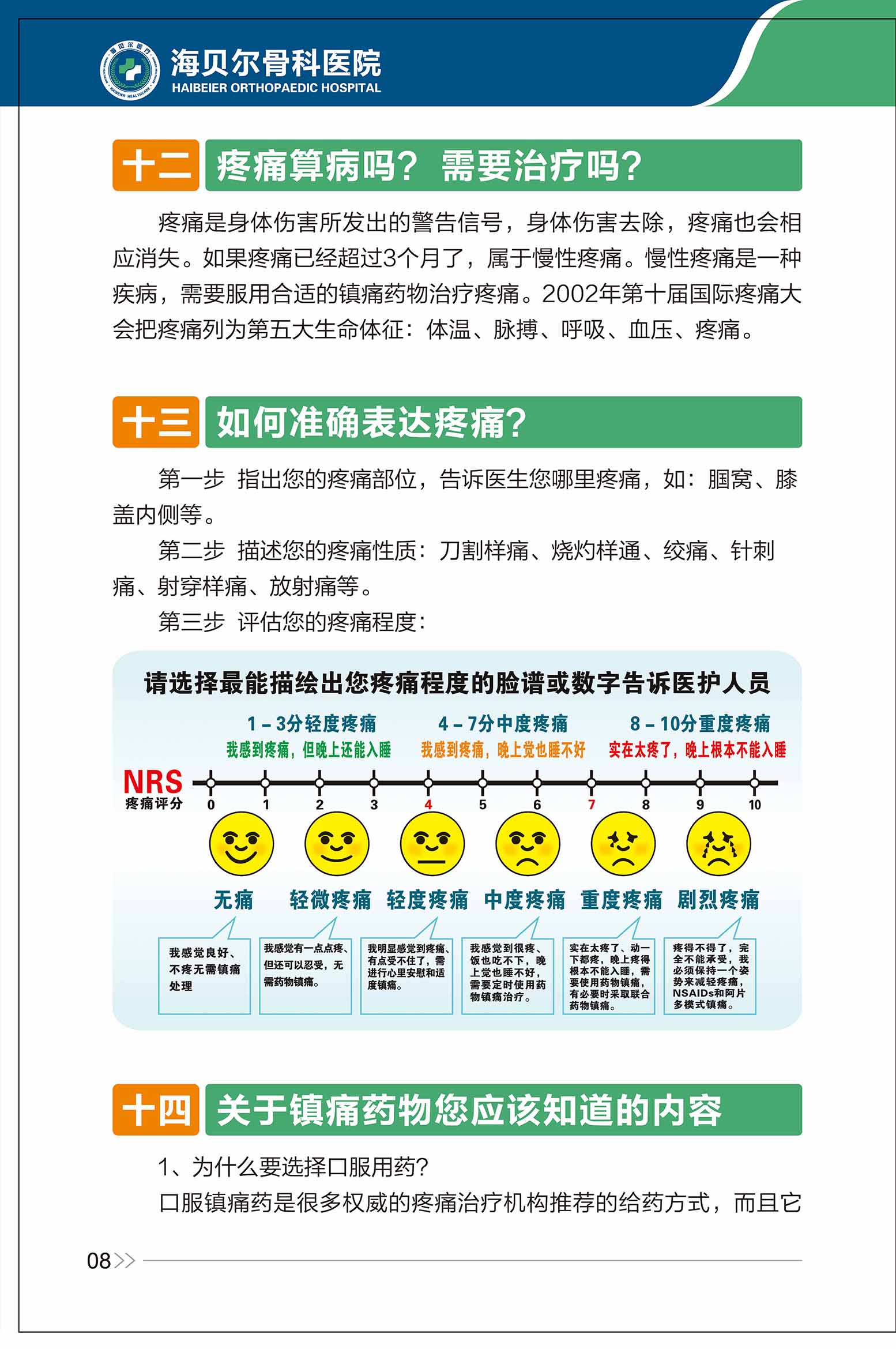 骨科患者术后疼痛相关知识
