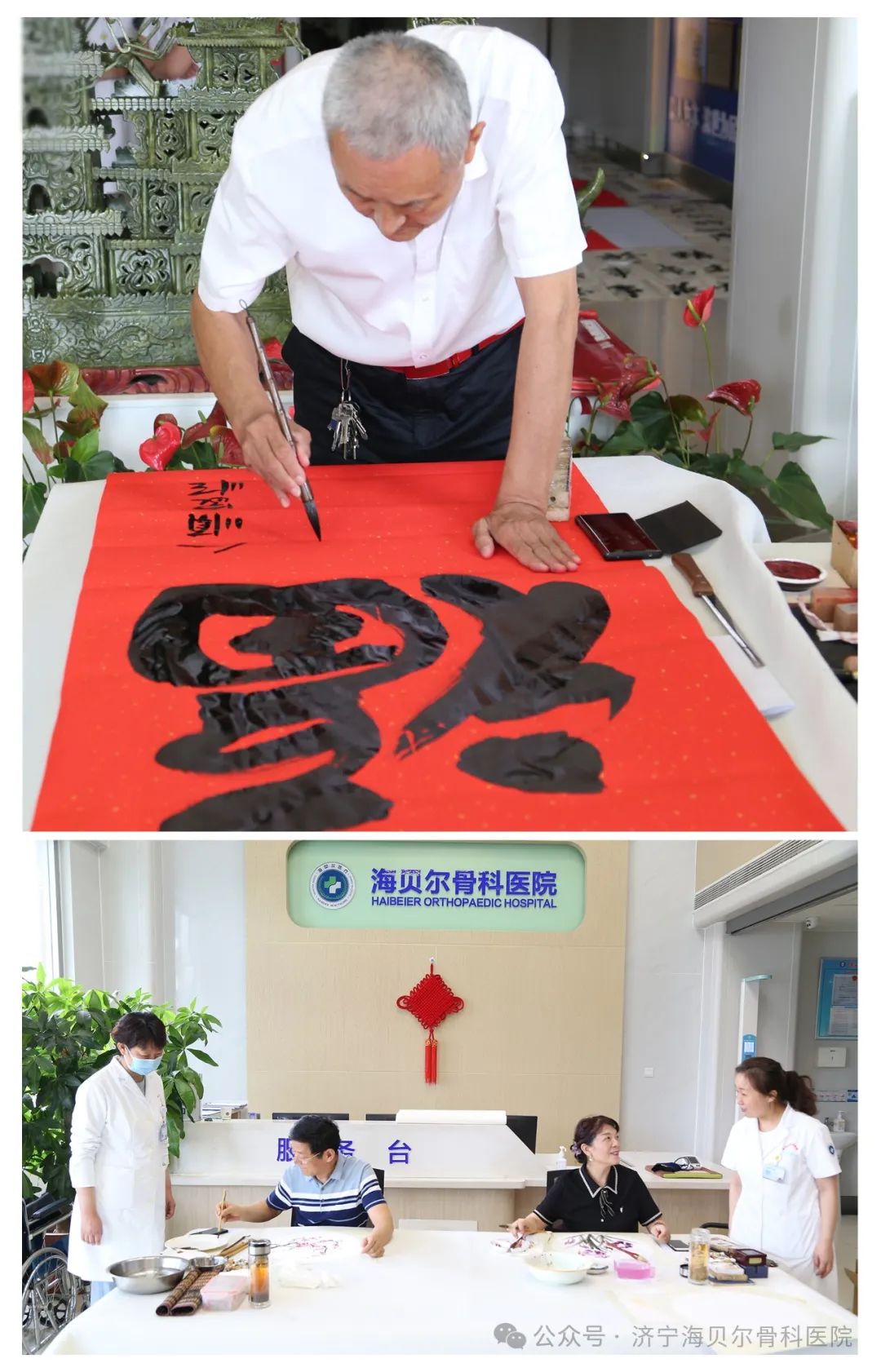 为庆祝这个美好的节日,医院精心组织策划了系列丰富多彩的活动。病友联谊会,展现了海贝尔人对患者的持续关注和厚爱;院领导带领专业人员外出参观学习,拓展视野,努力提高管理能力和专业技术水平;书画艺术大师与医疗人员联袂,书画艺术与医疗技术完美融合,在“父亲节”之际为老年男性患者送上一份祝福;在五周年院庆之际以“医路同行 · 再谱新篇”为主题的员工征文比赛,抒发员工与医院共成长的感情,畅想医院健康发展的美好愿景。作为对患者信任和支持的深情回馈,海贝尔在五周年之际特别推出了病友联谊会活动。6月28日我们诚邀曾经接受住院治疗的患者享受免费复查、健康指导,并组织病友们交流健康心得。他们纷纷表示,海贝尔骨科医院的医疗技术和服务质量非常出色,不但在院期间得到了家人般的呵护和照顾,出院后也同样如亲人般的关怀和挂念着我们。体现了医院对患者长期健康的持续关注,也传递了海贝尔对每位患者的深切关怀和不变的承诺。在追求卓越的道路上,海贝尔从未停歇。作为庆典的重要组成部分,医院组织各科室精英团队前往鲁西骨科医院进行了深入的参观与学习交流。这次访学让海贝尔的专业团队、管理团队有机会近距离观察和学习先进的医疗技术与管理理念,使大家开阔了眼界,拓展了视野,为医院未来的发展提供了有益的借鉴和启示,也为两院搭建了宝贵的沟通桥梁,共同推动骨科医疗事业的进步与发展。6月16日“父亲节”之际,医院邀请了济宁老年书画研究院的书画大师来医院挥毫泼墨,为住院的老年男性患者送来了“父亲节”的祝福,为医院增添了一抹浓重的艺术气息。书画大师们用他们的笔墨,绘制出一幅幅精美的书画作品,赠送给住院的患者,祝愿大家福寿、家和、安康!这也寓意着医院的未来发展更加兴旺、辉煌。这些作品是对医院五年成就的颂扬,更是对所有患者早日康复的美好祝愿,这正是医院对患者人文关怀的高度体现。为了庆祝五周年,医院还开展了“医路同行 · 再谱新篇”五周年征文比赛,得到了全院员工的热情响应,一篇篇感人肺腑的文章,记录了海贝尔的成长历程,展现了员工们的敬业精神和对医院的深厚情感。这些文字不仅是对过去的回顾,更是对未来的憧憬,激励着我们继续前行。五周年系列庆典活动丰富多彩,精彩纷呈,展示了医院五年来取得发展与成就,更体现了医院对患者、对员工、对社会的关爱与责任。