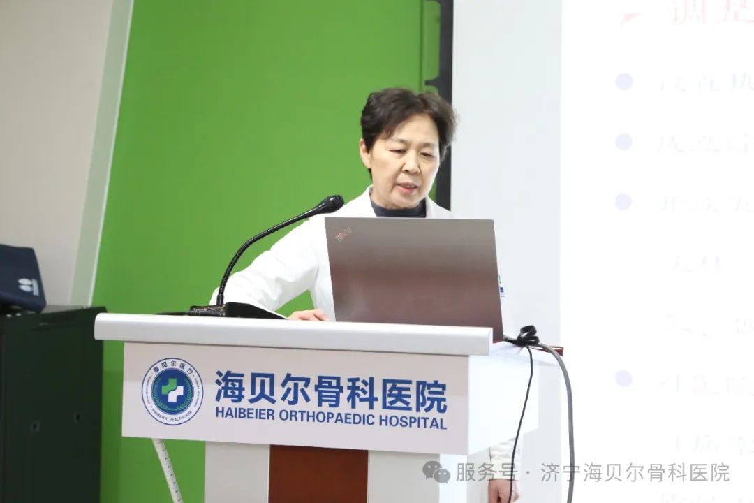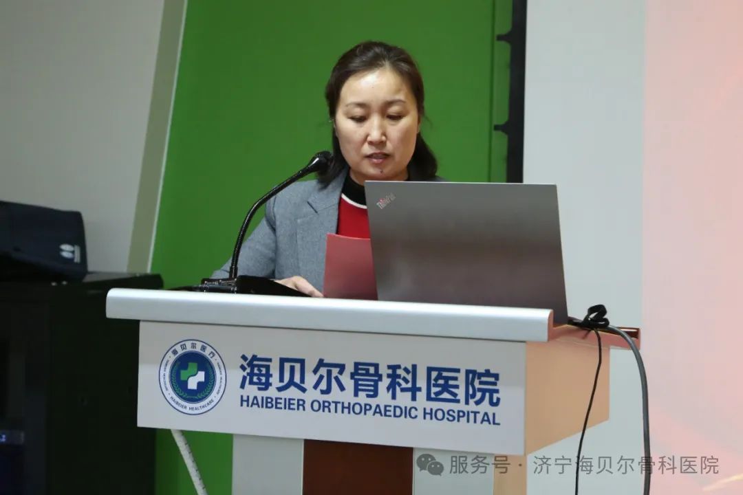 会议由海贝尔医院党支部书记相瑞艳主持。相书记用坚定而充满激情的声音向全场致开幕词。 首先,海贝尔骨科医院院长徐丽,就2024年度医院的整体工作进行了全面而细致的总结。她回顾了过去一年中,医院在医疗服务、学科建设、技术创新、人才培养等方面取得的显著成就,并对全体员工的辛勤付出表示了衷心的感谢。同时,徐院长也指出了工作中存在的不足和改进的方向,为医院未来的发展指明了道路。并对2025年的工作进行全面部署。