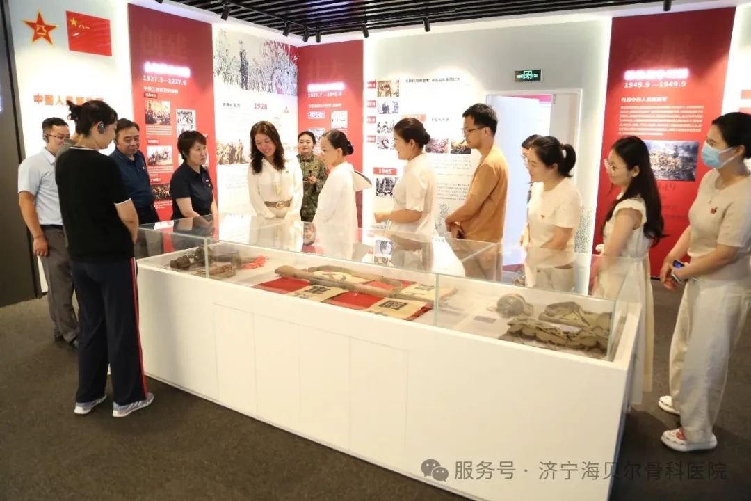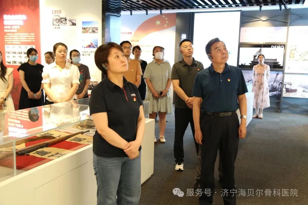 为庆祝中国共产党成立104周年,进一步强化党员干部的国防观念和爱国情怀,海贝尔骨科医院党支部书记相瑞艳带领支部党员及业务骨干,走进济宁市人民防空宣传教育基地参观学习。