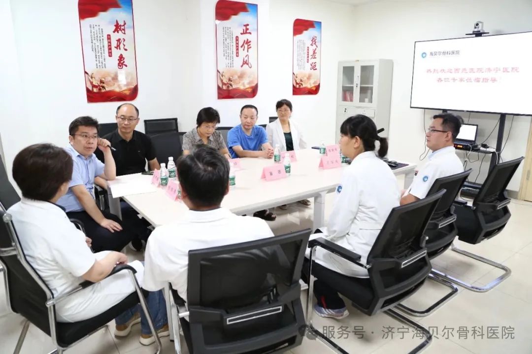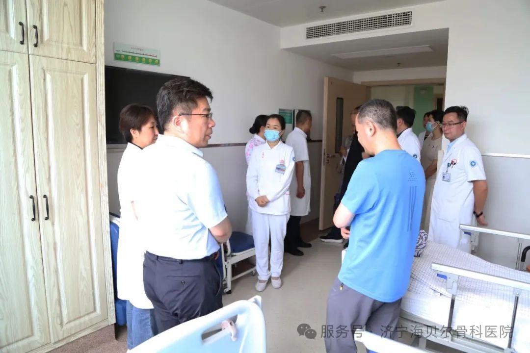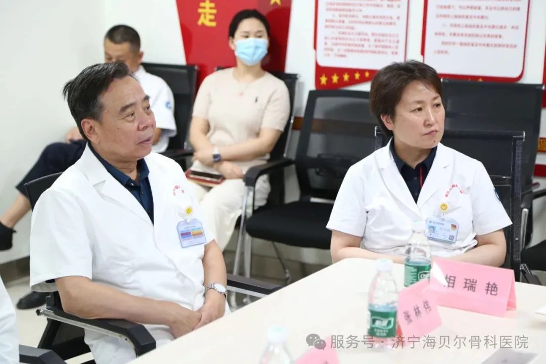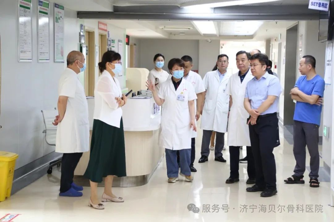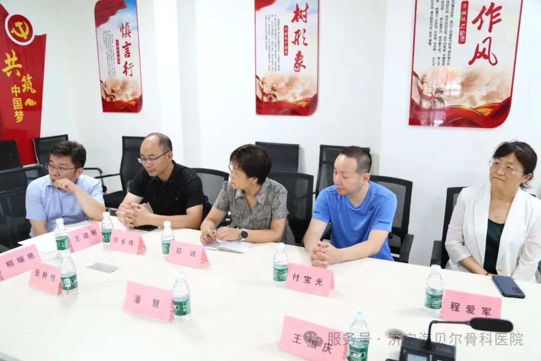 2025年7月1日,中国中医科学院西苑医院济宁医院(济宁市中医院)王建明副院长带领医务部主任刘长伟、护理部郑峰主任、骨伤科付宝光主任以及康复科程爱军主任一行,莅临海贝尔骨科医院指导工作。此次指导工作对于促进两家医院之间的交流与合作,提升海贝尔骨科医院的医疗服务水平具有重要意义。