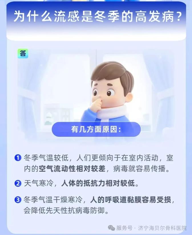 随着气温逐渐下降,流感病毒进入活跃期。近期,全国多地流感监测数据显示,流感病毒活动水平持续上升,流行毒株以甲型 H3N2 为主。海贝尔骨科医院在此提醒您:别把流感当“小感冒”,科学预防是关键。