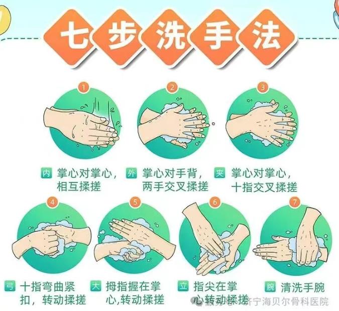 勤洗手,使用肥皂和流动水按“七步洗手法”(文末有介绍)清洗;外出归来、饭前便后、接触公共物品后及时洗手;咳嗽或打喷嚏时用纸巾或肘部遮挡口鼻,避免飞沫扩散;不用脏手触摸眼睛、鼻子和嘴巴。